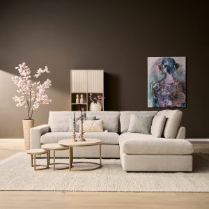 Ontdek de luxe en comfort van de MySofa Floris hoekbank, een stijlvolle bank van 2,5 zits met een divan. Kenmerkend zijn de strakke lijnen die de Floris een eigentijdse touch geven. Deze bank is bekleed met de hoogwaardige stof Baltimore Greige in een elegante beige tint.