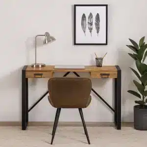 Dit bureau Britt is voorzien van 2 lades. Het meubel is vervaardigd uit Mangohout en zwart gepoedercoat metaal.