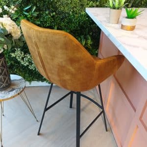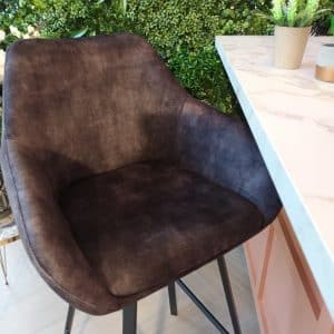 Barkruk Casper is leverbaar in de kleuren Cognac/Gold en Antraciet, dankzij de armleuningen en goede rugsteun ideaal om de hele avond in te zitten. Barstoel Casper is bekleed met velvet stof en is daarom makkelijk afneembaar met een lichtvochtige doek. Deze kruk is voorzien van een stevig zwart metalen frame, en is 180 graden draaibaar.