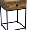 Bijzettafel met blank afgelakt mango houten blad en zwart metalen frame.