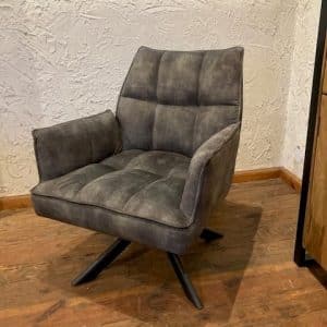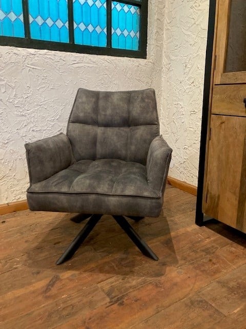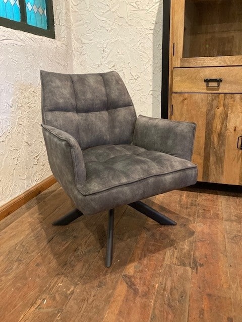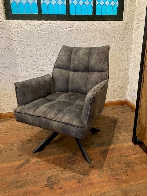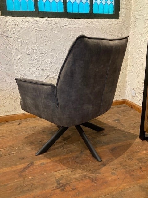 Luxe en netjes afgewerkte draai-fauteuil. Uitgevoerd in een zachte en makkelijk te onderhouden velvet stof.