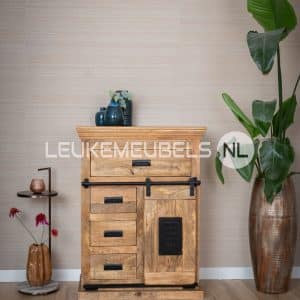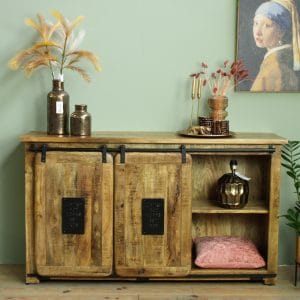 Dit stoere robuuste dressoir biedt zowel opbergruimte als ruimte om te decoreren. Dressoir India is robuust en praktisch, en past in iedere interieurstijl. Door zijn stoere industriële details een ware toevoeging in elke kamer!