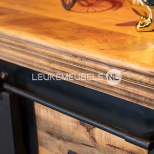 Dressoir iron mango black is perfect voor iemand die van een industrieel design houdt. Het frame van deze kast is van zwart staal en het bovenblad is van mangohout. Deze stoere, robuuste meubels zijn allemaal blikvangers en ook nog eens makkelijk te combineren. Deze serie bestaat uit een buffetkast, tv meubels in verschillende afmetingen en het dressoir.