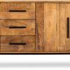 Dit Jayden Sideboard is gemaakt van strak egaal mangohout, anders dan “gewent” gezien mangohout bekent staat om zijn zacht golvende uiterlijk.