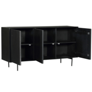 Het dressoir uit de Madison serie is gemaakt van mangohout. Het metalen frame is afgewerkt met een zwarte lak. De deuren zijn voorzien van een verticaal lattenpatroon en is afgewerkt met een zwarte lak.