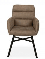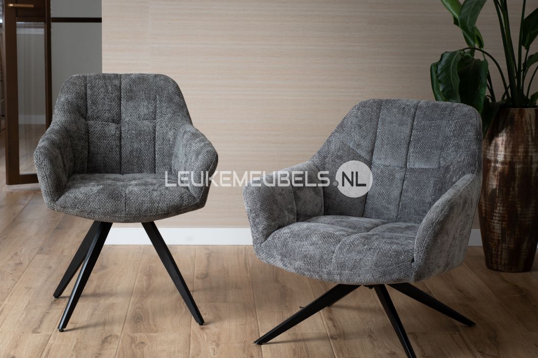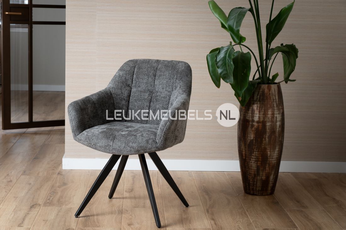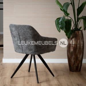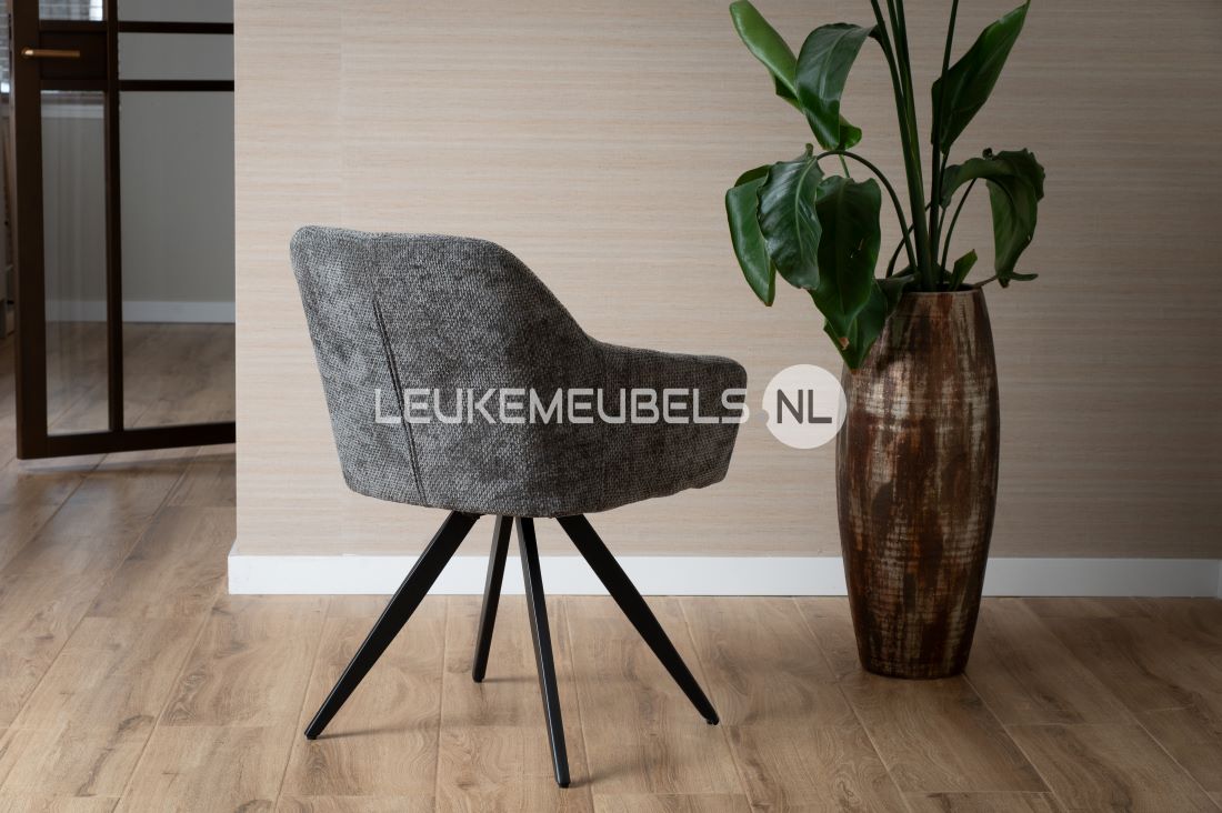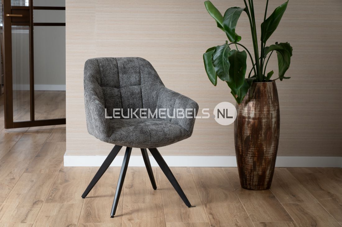 Eetkamerstoel Beauty is bekleed met een fijne zachte weefstof, keuze uit 3 kleuren. De stoel is voorzien van een zwarte metalen poot en is 180 graden draaibaar.