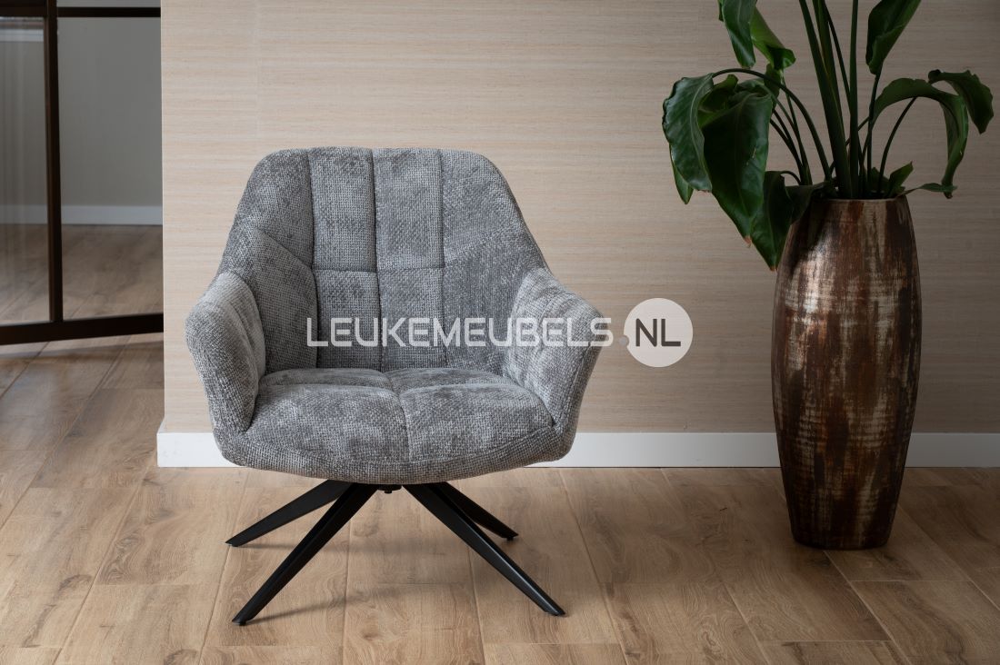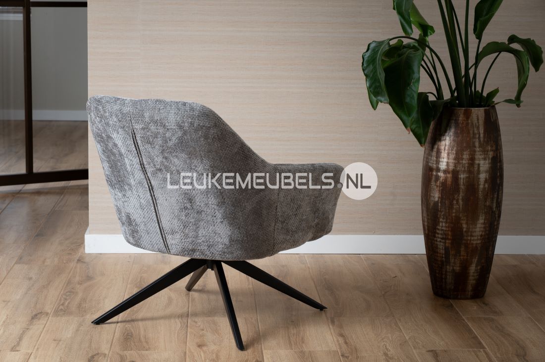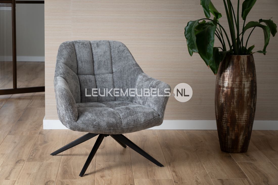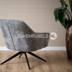 Fauteuil Beauty is bekleed met een fijne zachte weefstof, keuze uit 3 kleuren. De stoel is voorzien van een zwarte metalen poot en is 360 graden draaibaar.