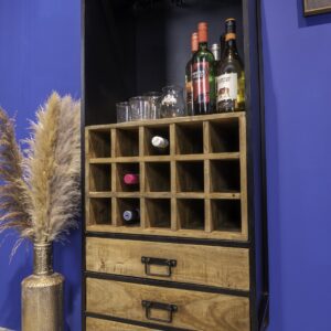 Ben je een liefhebber van allerlei soorten wijn of dranken en ben je op zoek naar een echte eyecatcher in jouw interieur? Dan is deze wijnkast wat je zoekt! Deze drankkast is alles wat je nodig hebt voor een gezellige avond met familie en vrienden.