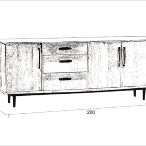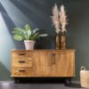 Dressoir Elias van het merk Livingfurn is gemaakt van mangohout, en is voorzien van 3 lades en 3 deuren. De meubelserie Elias is ontworpen met een knipoog naar de jaren 70.