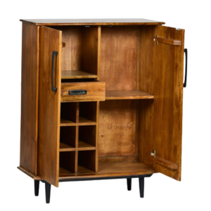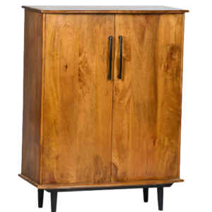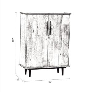 Wandkast Elias van het merk Livingfurn is gemaakt van mangohout, en is voorzien van 2 grote deuren. Binnenin vindt u 2 legplanken, 1 lade en 6 vakken. De meubelserie Elias is ontworpen met een knipoog naar de jaren 70.
