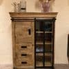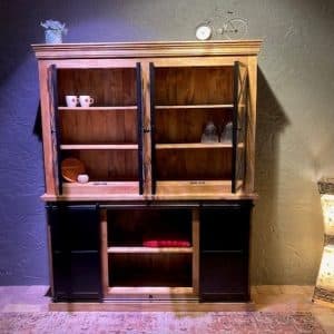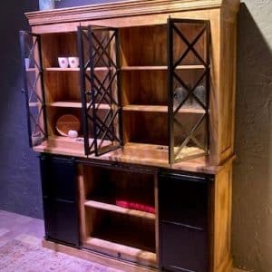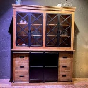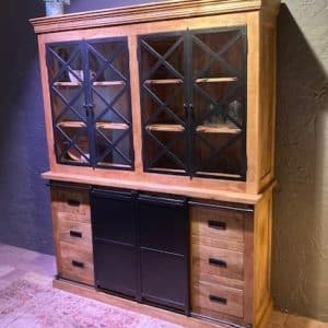 Deze prachtige Industriële buffetkast van Mangohout gecombineerd met zwart staal, bestaat uit 2 delen, en is voorzien van 6 lades, 2 schuifdeuren en 4 openslaande deuren. Het mangohout is afgelakt met blanke lak. Een ware eyecatcher!