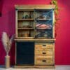 Dit prachtige Industriële tv meubel van Mango hout gecombineerd met zwart staal, is voorzien van 4 lades en 2 schuifdeuren. Het mangohout is afgelakt met blanke lak, een ware eyecatcher, past perfect in elk interieur!