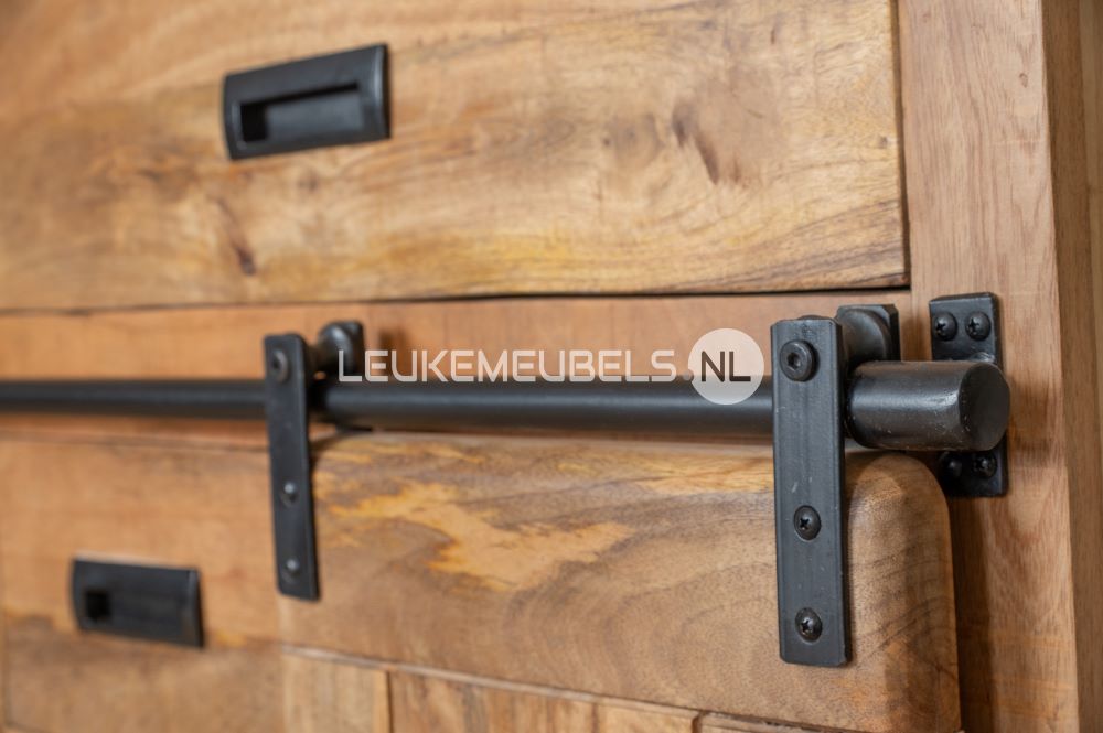 Dit stoere wandkastje biedt zowel opbergruimte als ruimte om te decoreren. Serie India is robuust en praktisch, en past in iedere interieurstijl. Door zijn stoere industriële details een ware toevoeging in elke kamer!